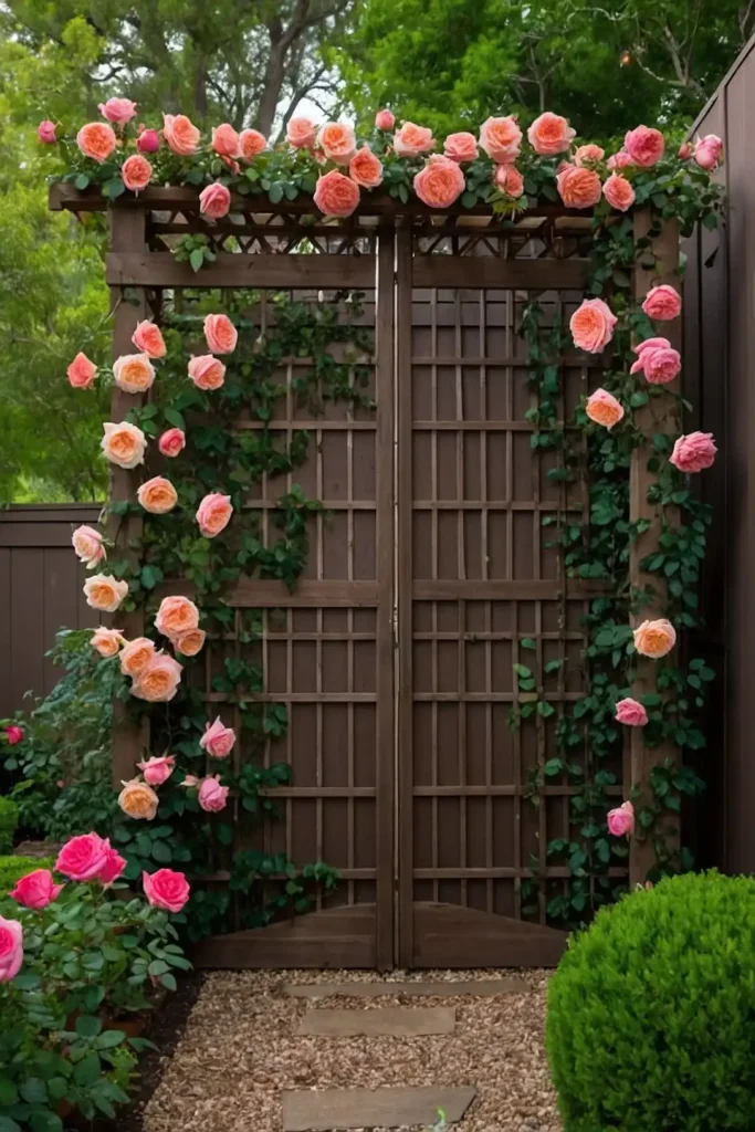 The vertical blooms soften harsh architectural lines while the trellis itself adds appealing structural elements to your garden design.