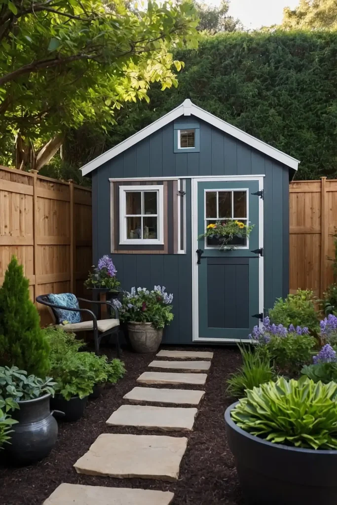 Arrange a collection of containers in graduated heights around your shed entrance, filled with colorful seasonal flowers and trailing vines.