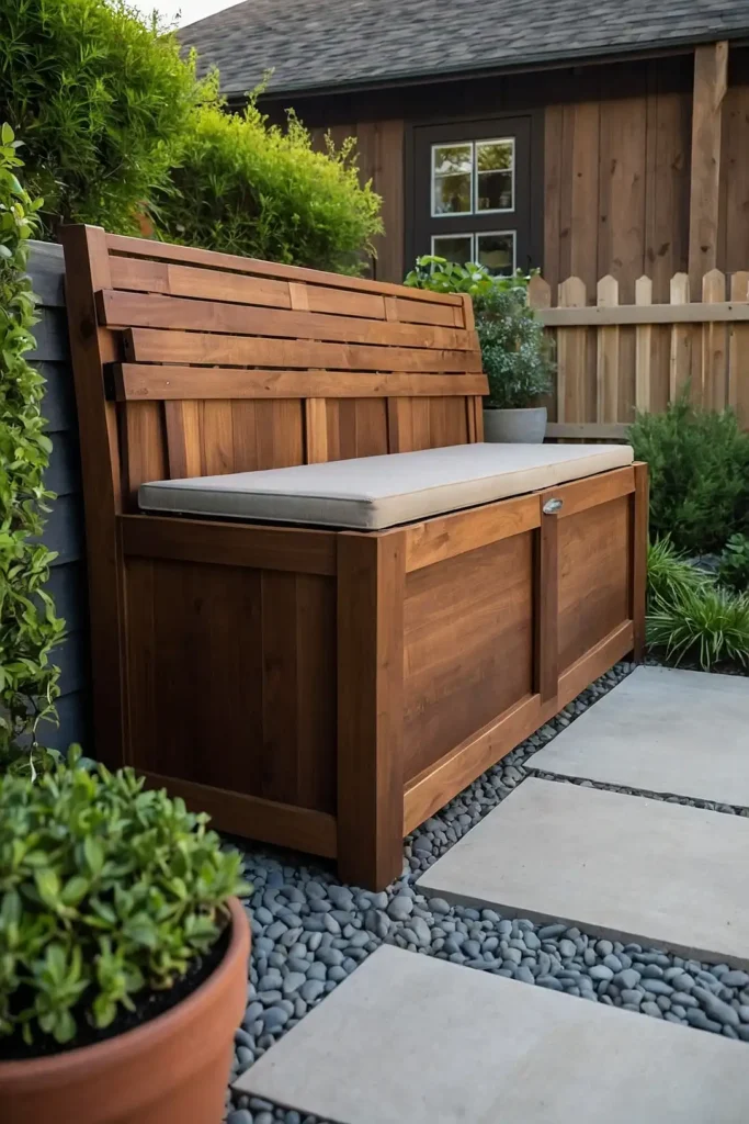 This multifunctional addition creates a destination while cleverly concealing items like gloves, seed packets, or small tools.