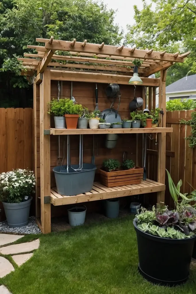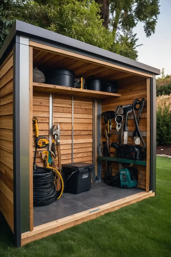 This clever solution keeps essential items easily accessible while incorporating them as part of your garden’s overall design aesthetic.