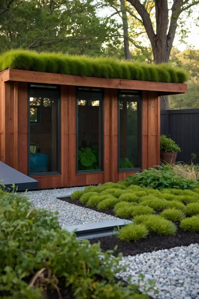 Ensure your shed structure can support the additional weight and incorporate proper waterproofing before implementing this striking feature.
