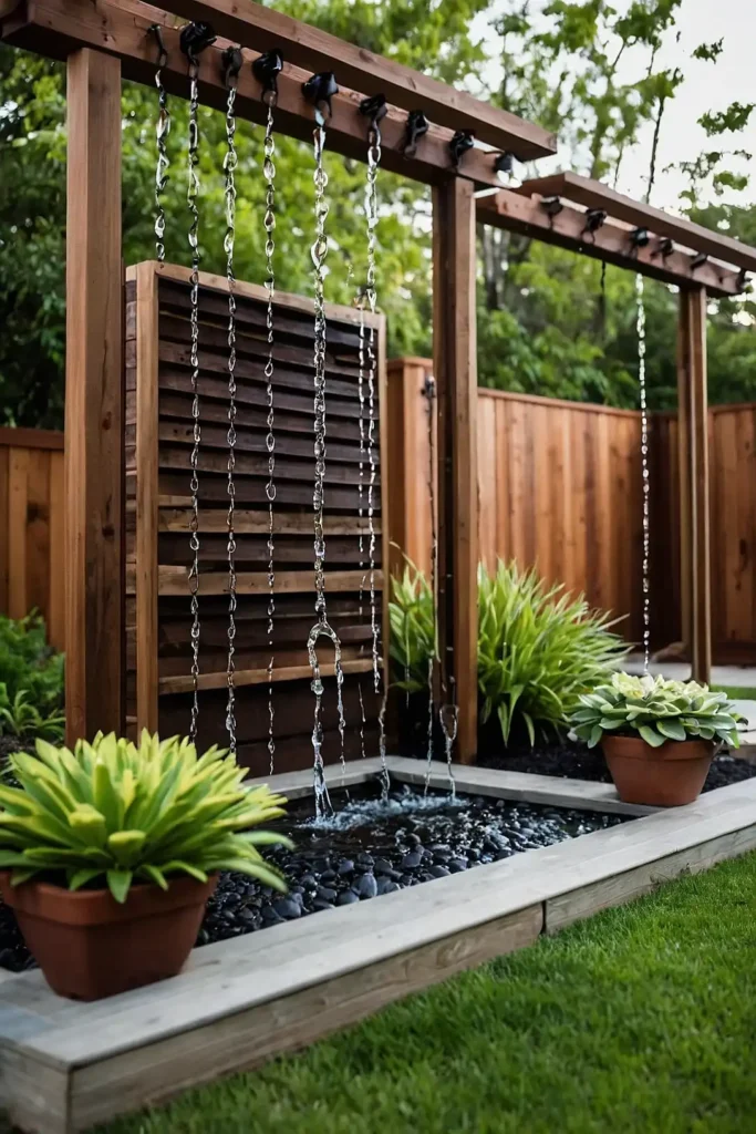 Install decorative rain chains from your shed’s gutter system that direct water into a small rock garden or rain barrel below.