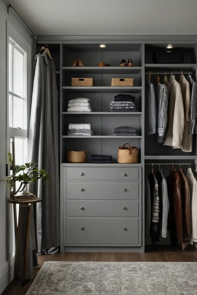 This classic medium gray creates subtle sophistication without competing with your clothing collection.