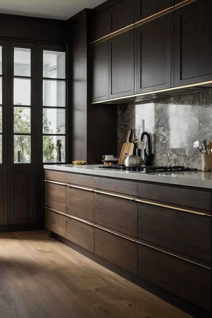 This distinctive choice creates a unique kitchen atmosphere. Its depth and slightly weathered quality provide superior dirt-hiding properties for busy cooking spaces.