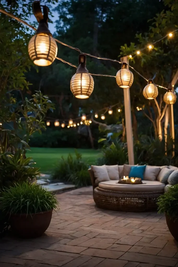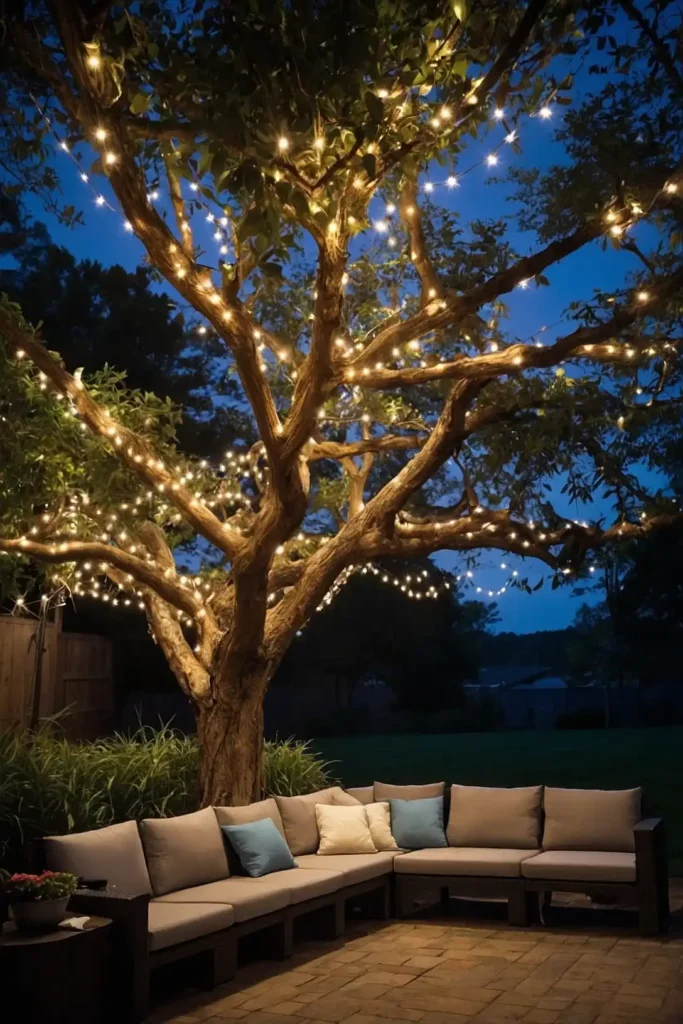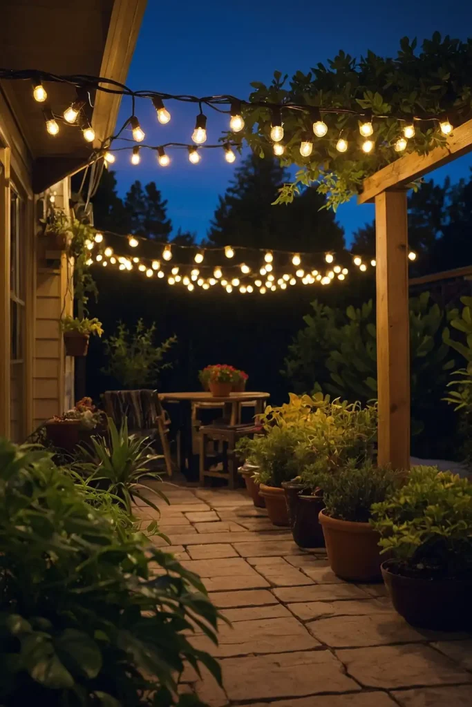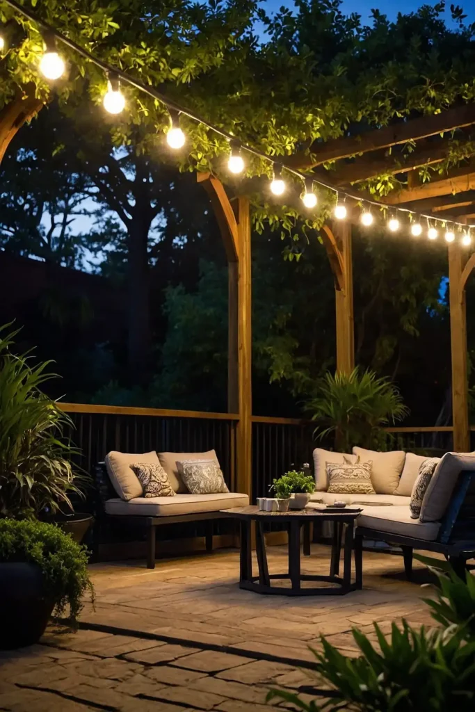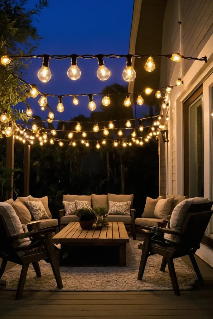 Use string lights to define the perimeter of your outdoor living space, creating a visual boundary without solid walls.