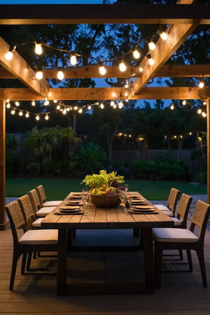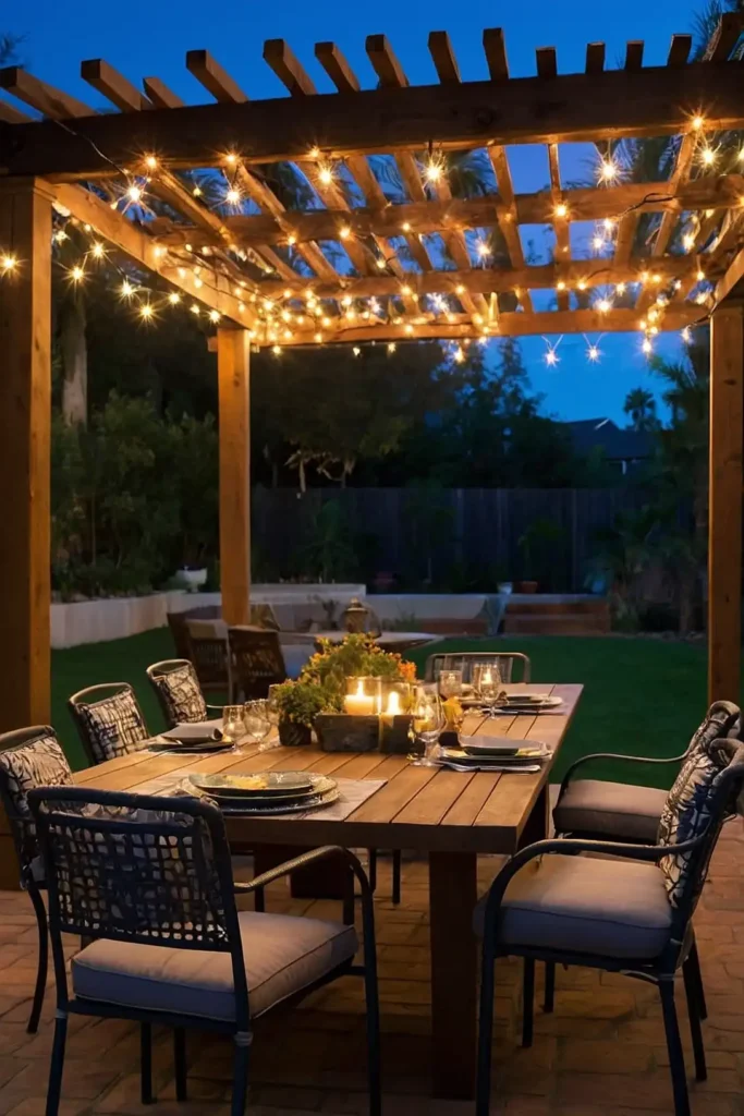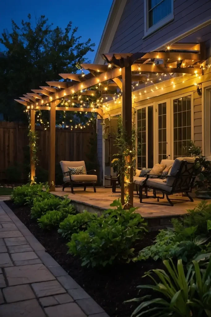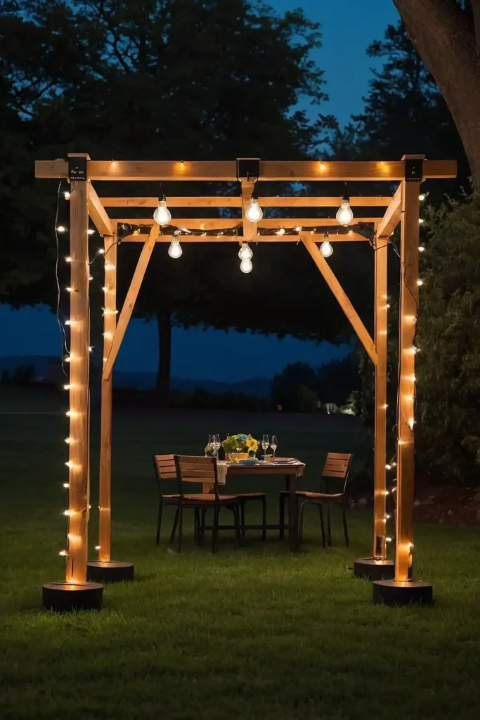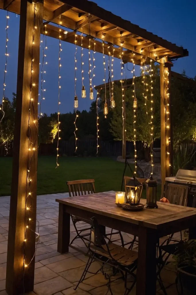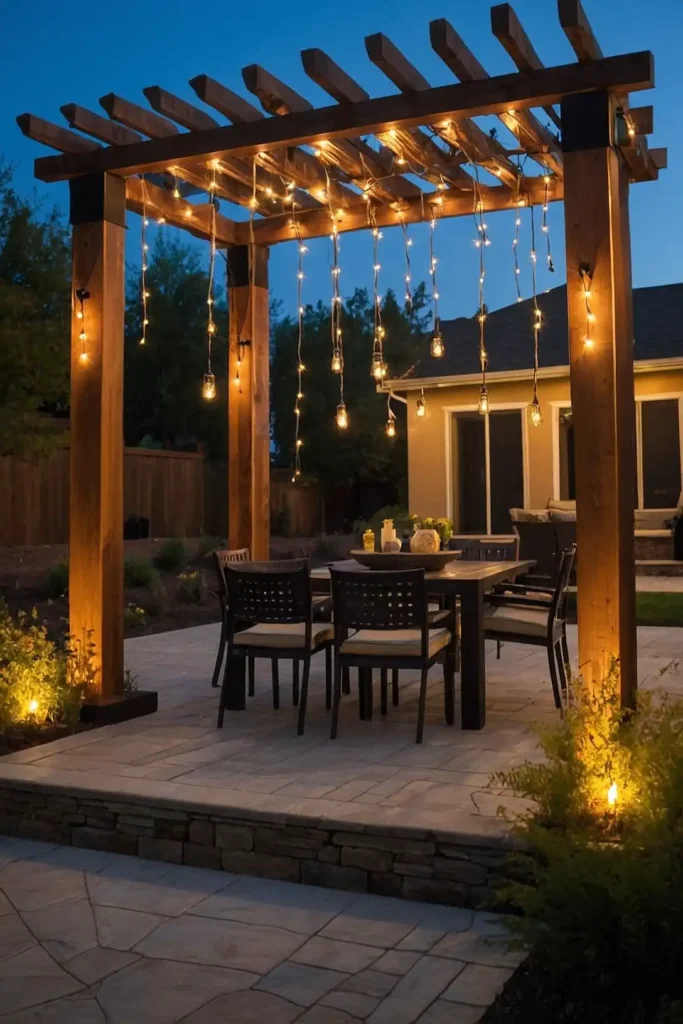 Transform your pergola into a nighttime showpiece by wrapping each support column with string lights.