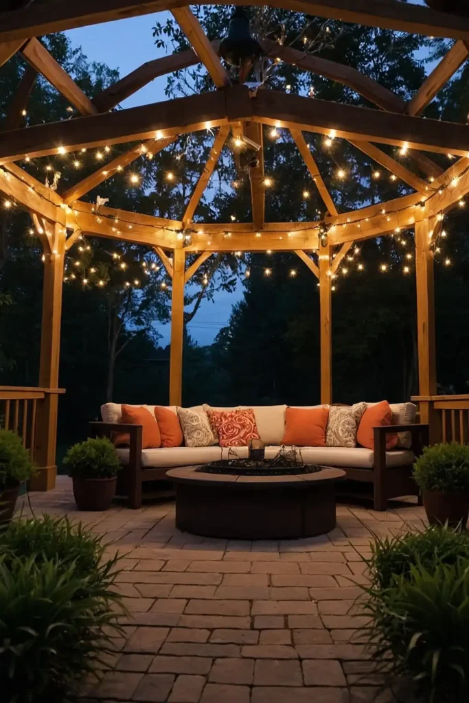 Line the interior ceiling of your gazebo with string lights to create a starry canopy effect.