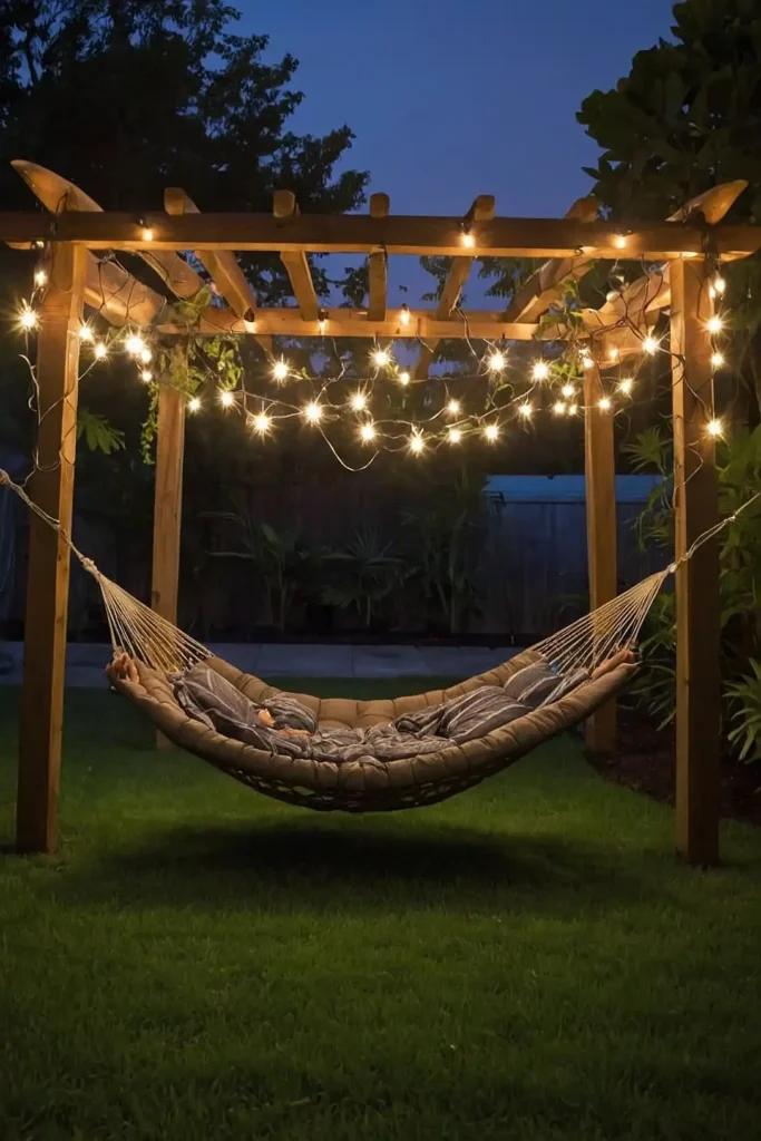 Envelop your hammock or hanging swing with a cocoon of string lights to create a magical relaxation zone.