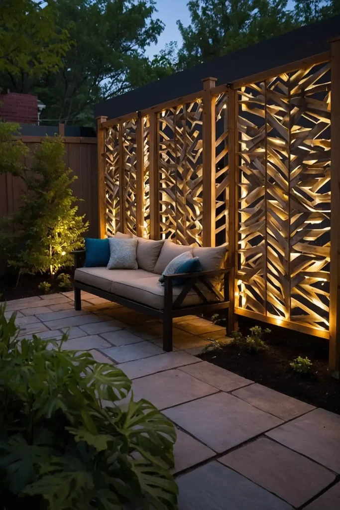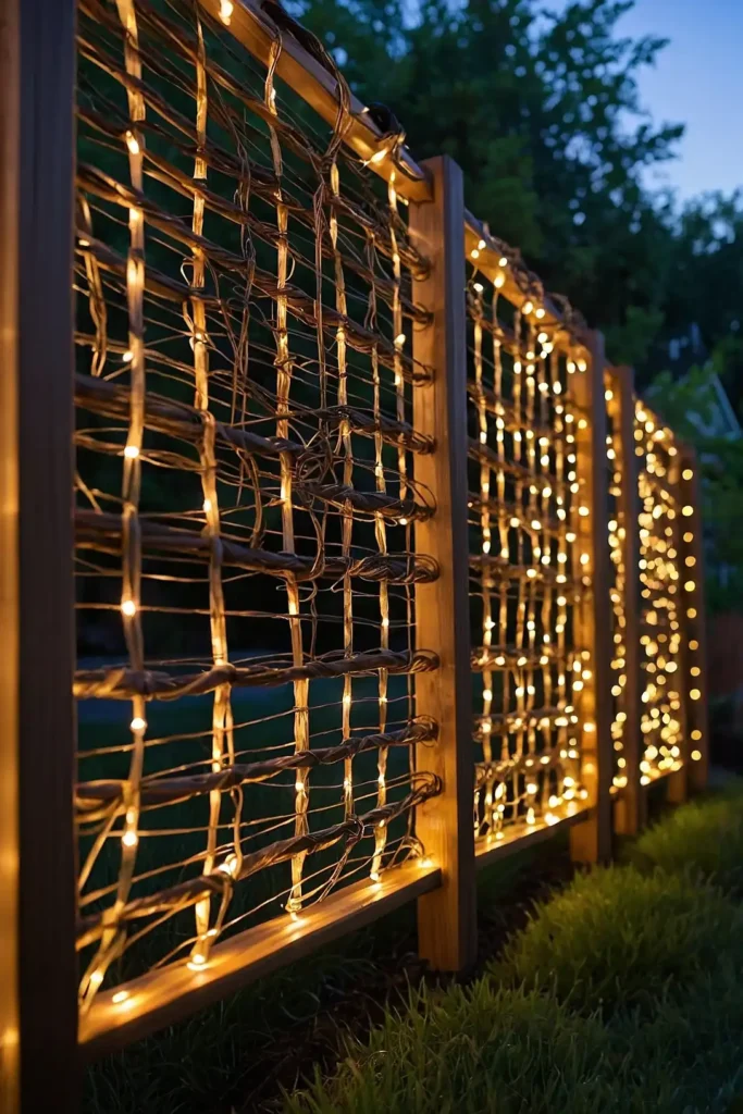 Weave string lights through fence panels to transform a plain boundary into a decorative feature.