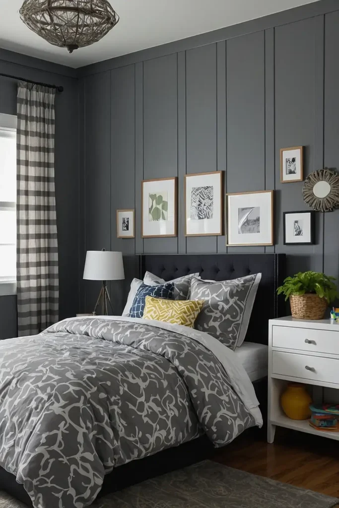 Charcoal creates an ideal foundation for gaming rooms, spaces for tech-oriented boys, or teen bedrooms with a more mature aesthetic.