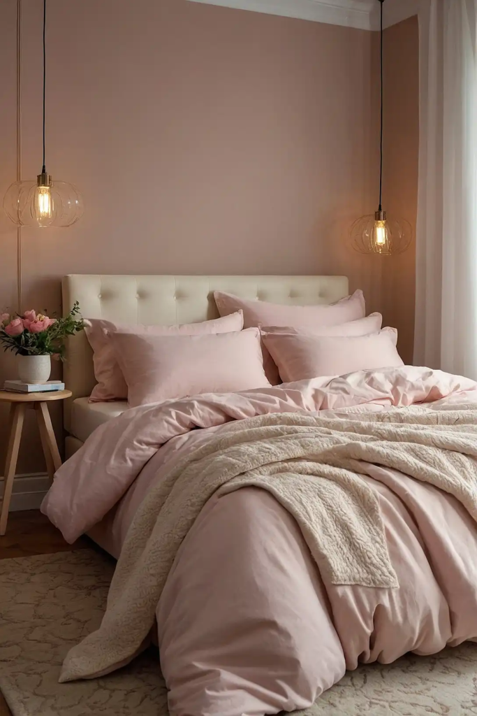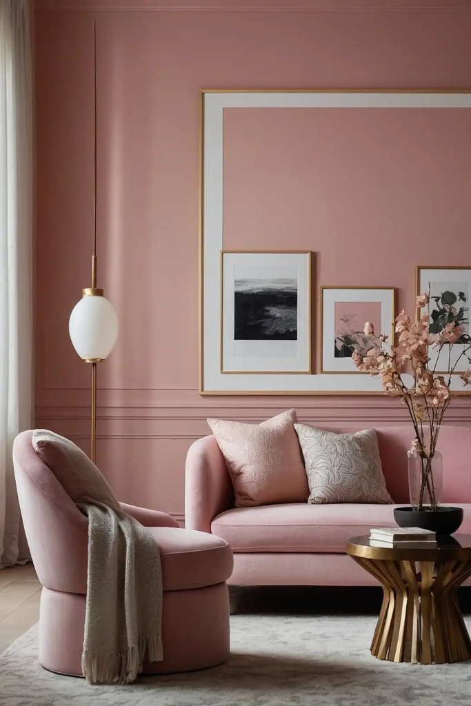 Blush pink adds a flattering glow to dark rooms, reflecting light in a way that creates a luminous effect.