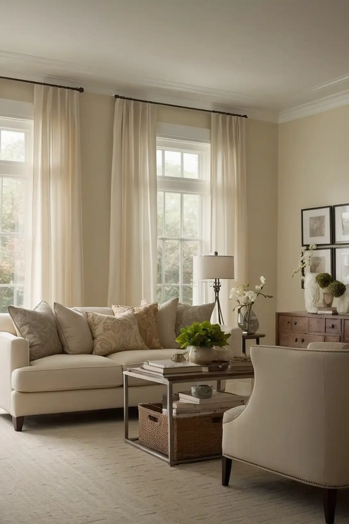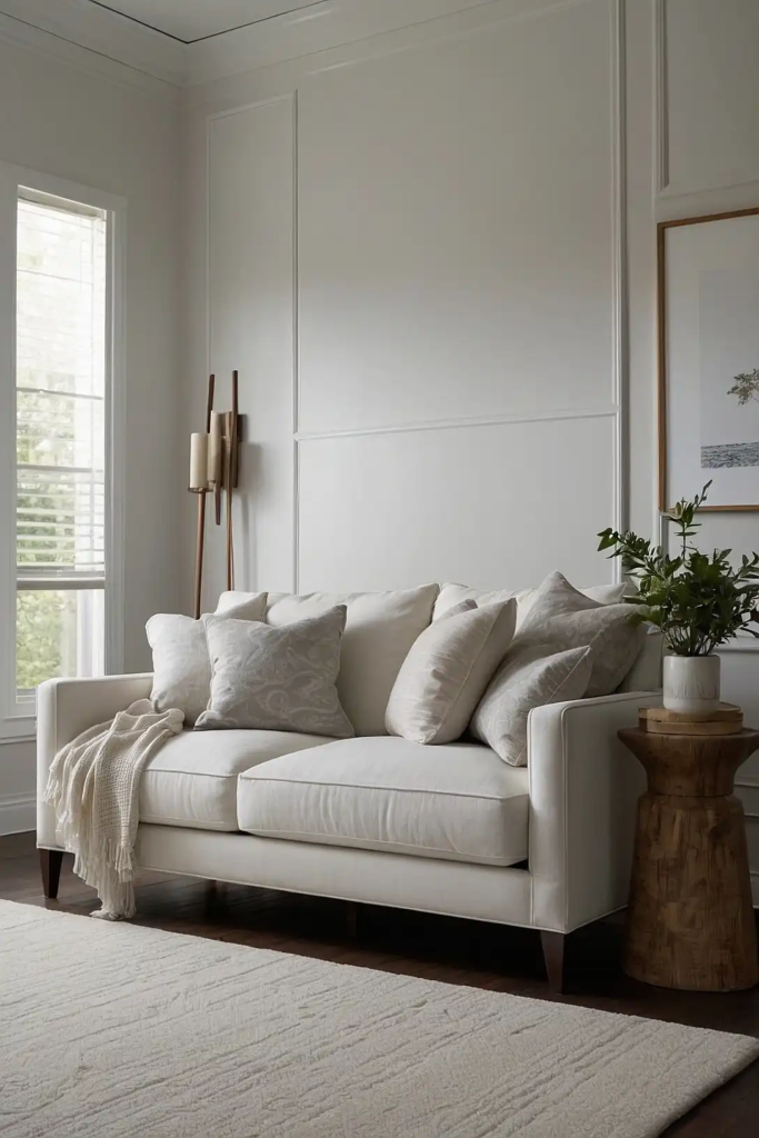 This complex neutral with subtle yellow-gray undertones reflects light beautifully while offering more character than basic white.