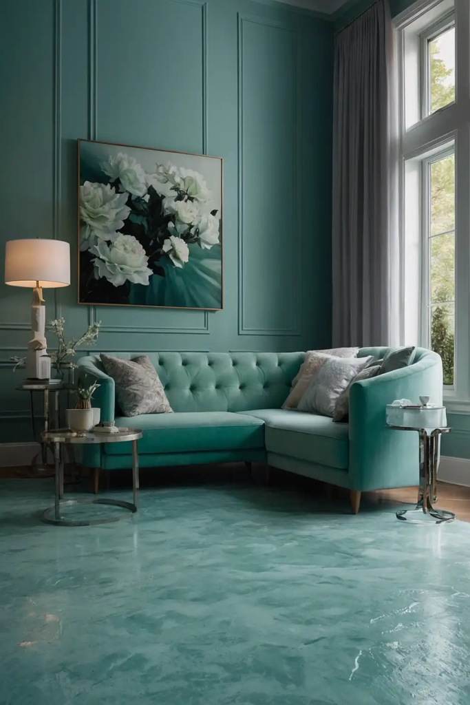This soft blue-green hybrid adds subtle energy to dim spaces without darkening them.