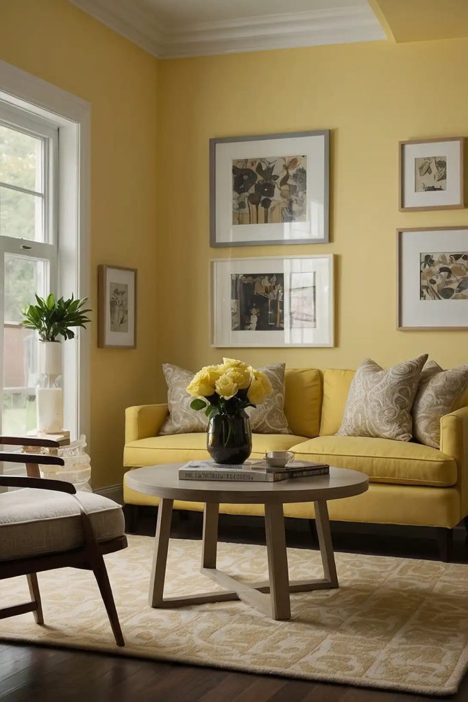 This soft, warm yellow reflects light with a cheerful glow that transforms dark rooms into welcoming environments.