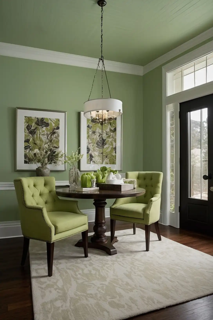 Pale celery adds refreshing brightness to dim spaces.