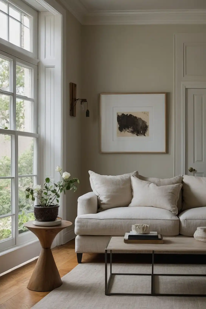 This light beige with subtle green undertones reflects light beautifully while maintaining an earthy sophistication.