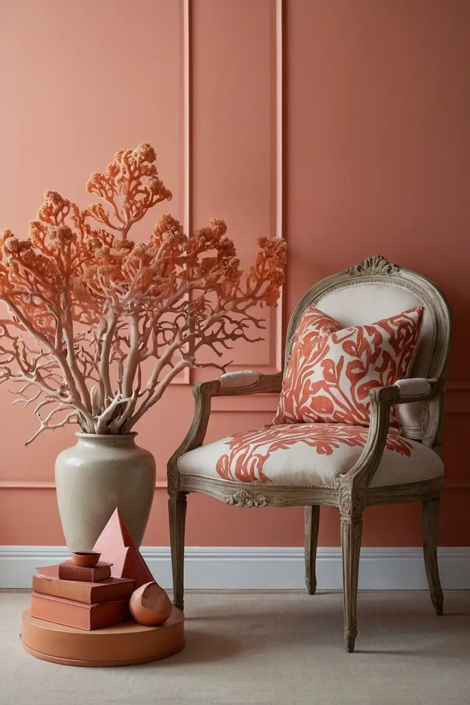 Soft coral adds energizing warmth to poorly lit spaces.