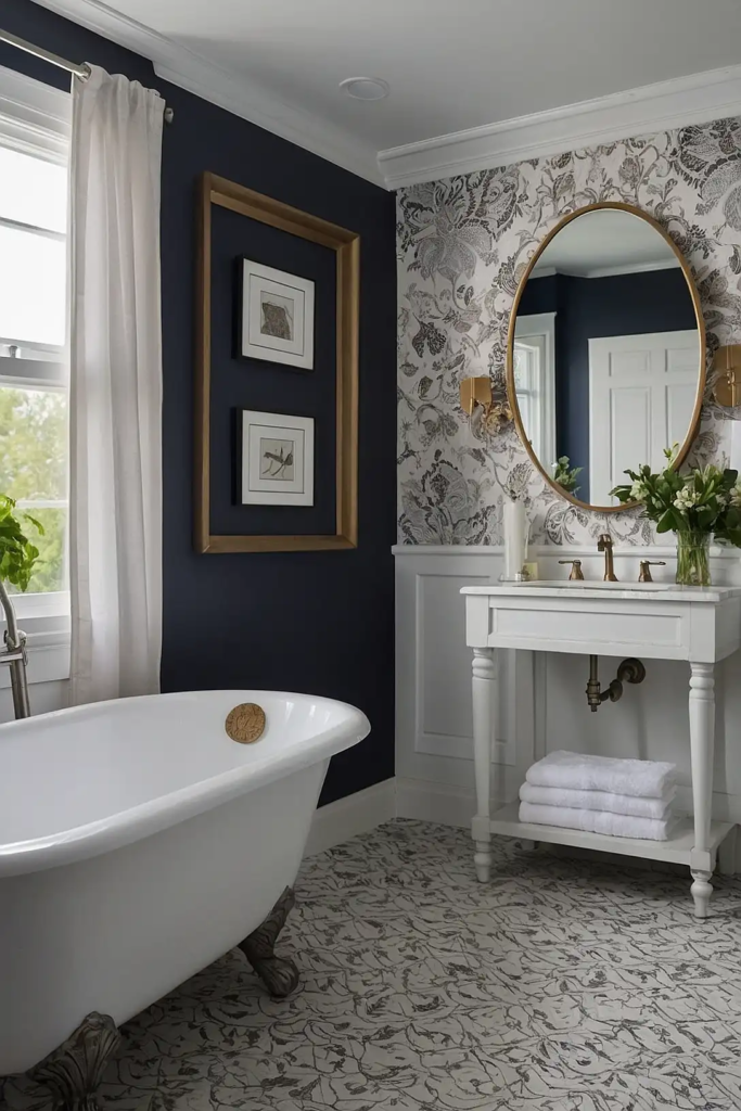 You’ll love how it creates a sophisticated backdrop that makes your small bathroom feel more expansive.