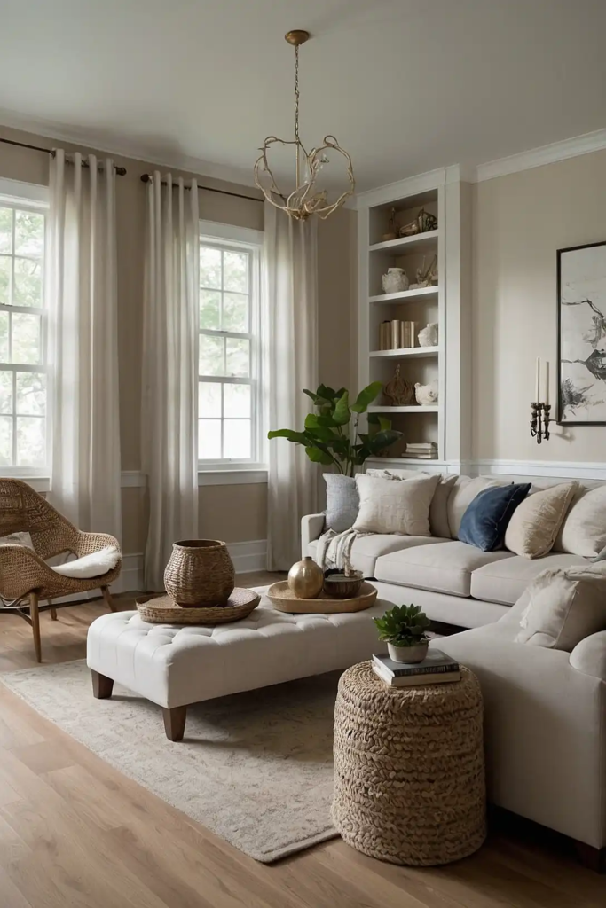 This soft, muted greige feels both fresh and timeless. You’ll appreciate how it creates a subtle, sophisticated backdrop that allows your furnishings to shine.