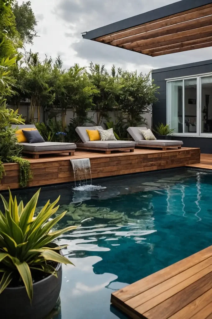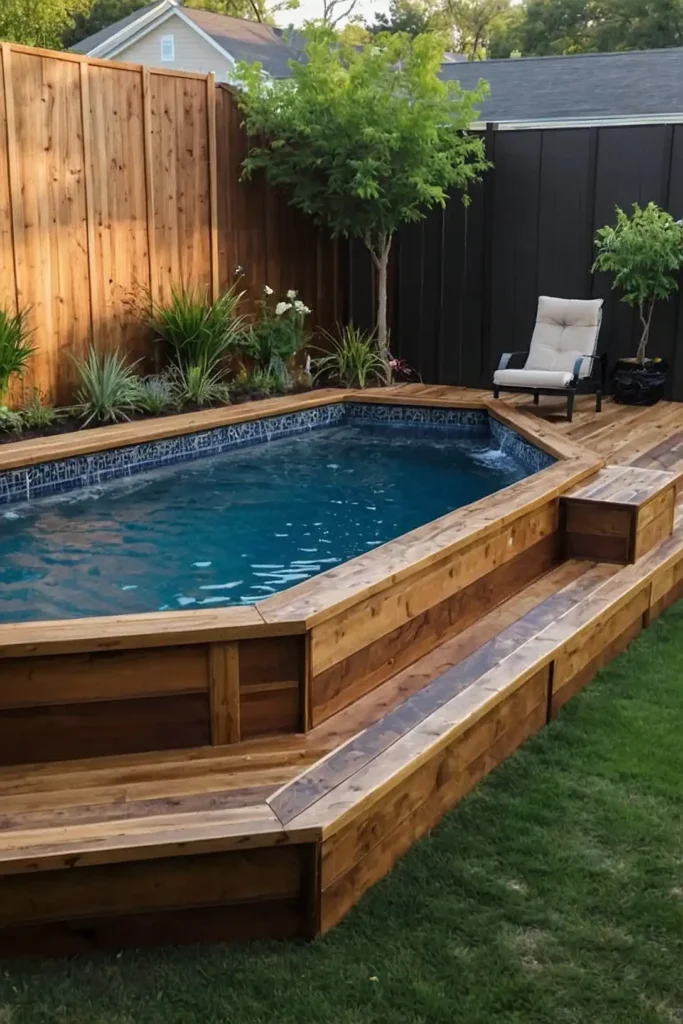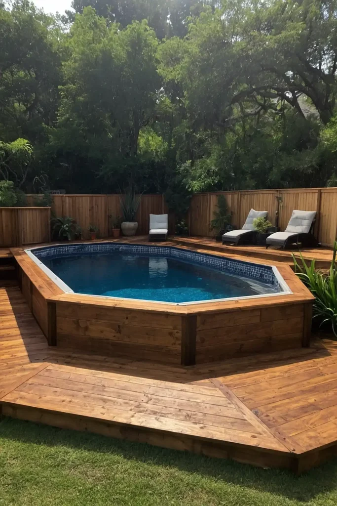 Build a partial or complete wooden deck around your pool to create a seamless transition between your yard and water.