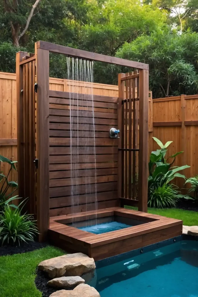 Build a simple outdoor shower near your pool entrance to rinse off before and after swimming.