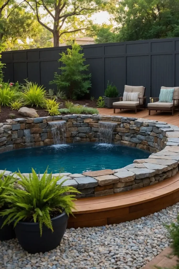 Install tall grasses, shrubs, or small trees around portions of your pool to create natural privacy screens without constructing fences.