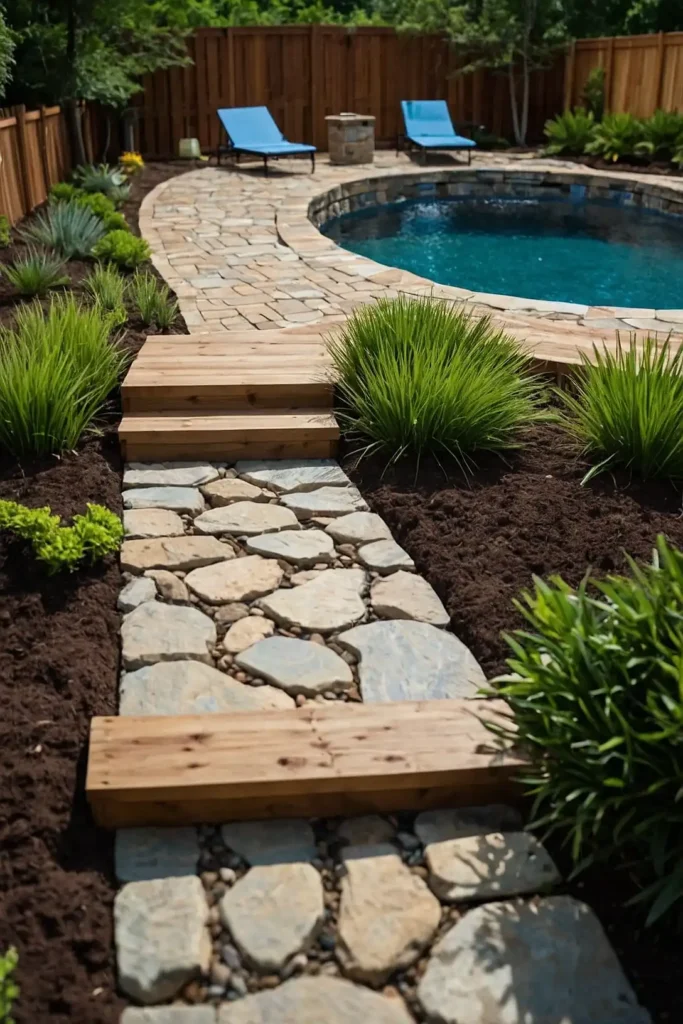 Create a dedicated stone pathway that leads to your pool area, establishing it as a destination within your yard.