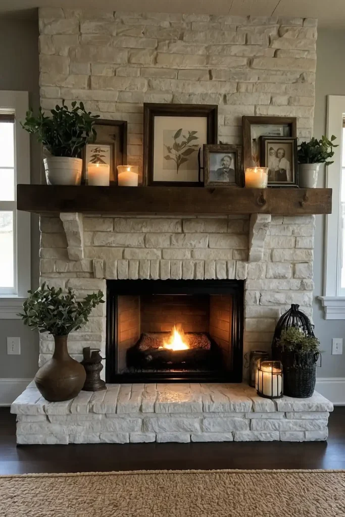 A well-decorated hearth creates instant warmth and character, even when no flames are burning.