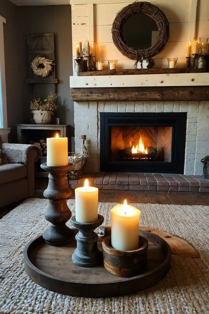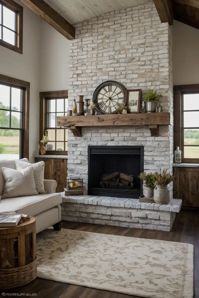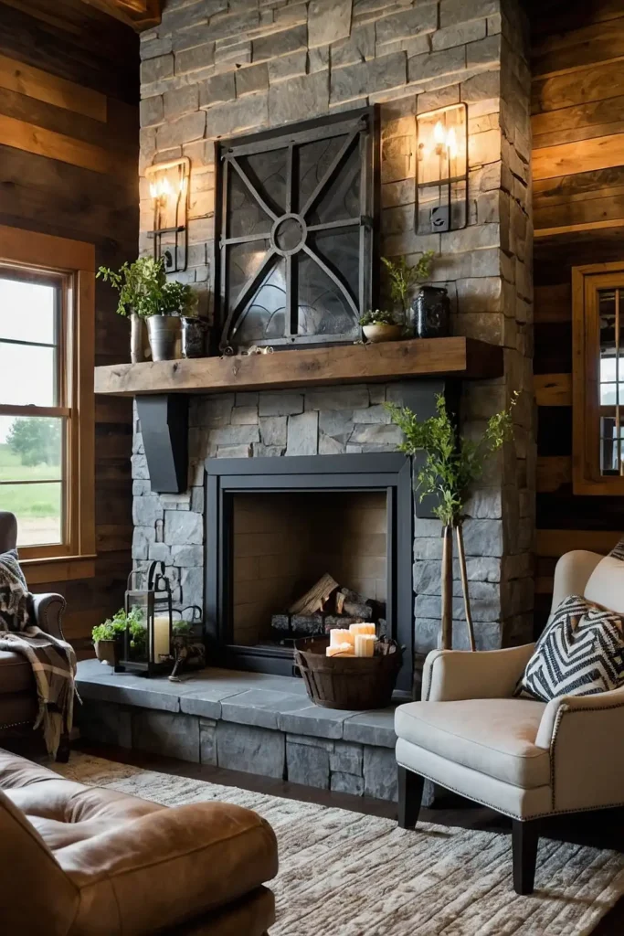 Your fireplace naturally draws attention as the heart of your home, making it the perfect canvas for showcasing your farmhouse style.
