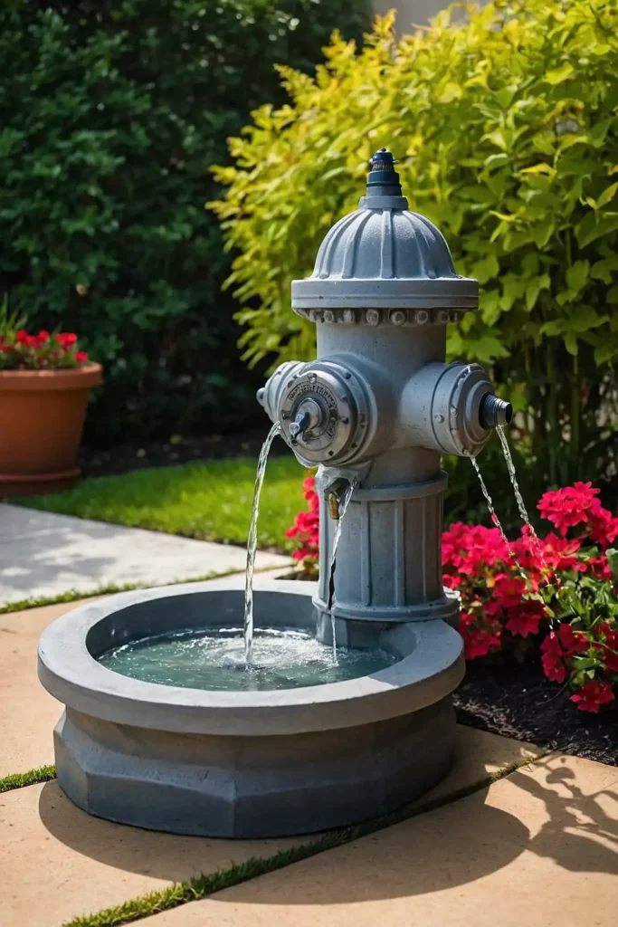 Create a playful fountain using a replica fire hydrant. Connect a pump system that makes water spray from the top.