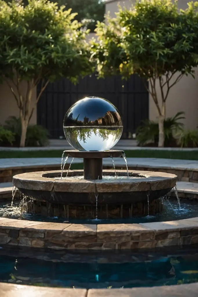 Water forms a film over the surface, creating a mesmerizing effect as the sphere slowly turns. Choose materials that complement your garden style.