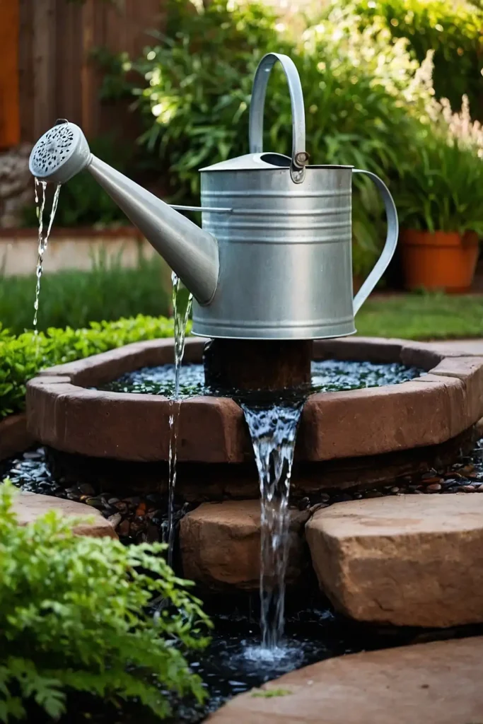 Transform an old metal watering can into a whimsical fountain. Position it at an angle so water appears to pour continuously from the spout.