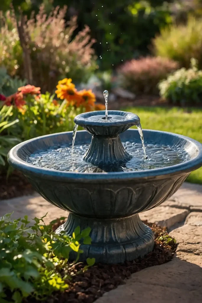 The gentle bubbling attracts more birds than still water. Choose a pump with adjustable flow to control the height of the water spout.