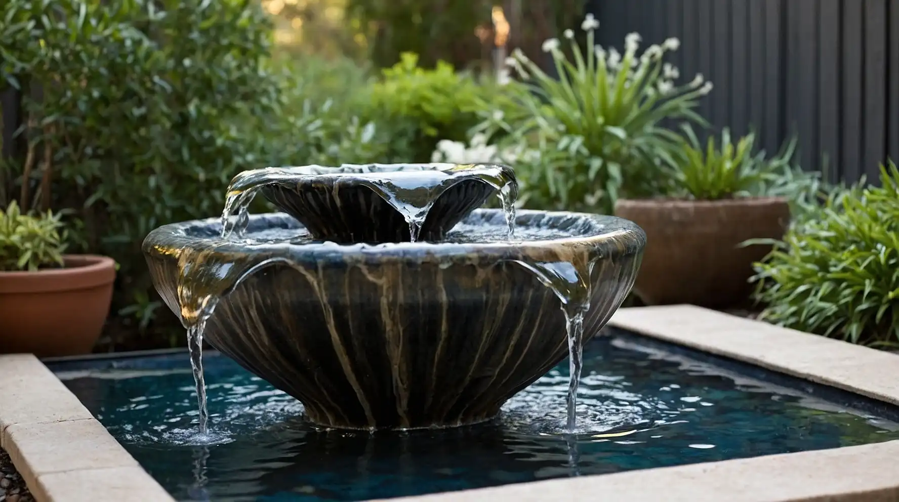The gentle gurgling sound adds ambiance to intimate outdoor dining areas.