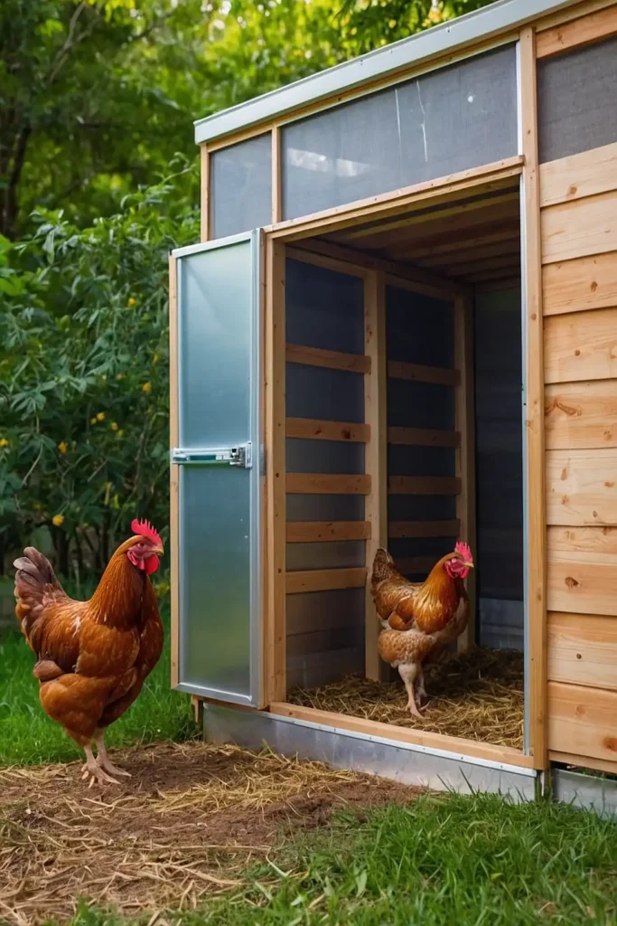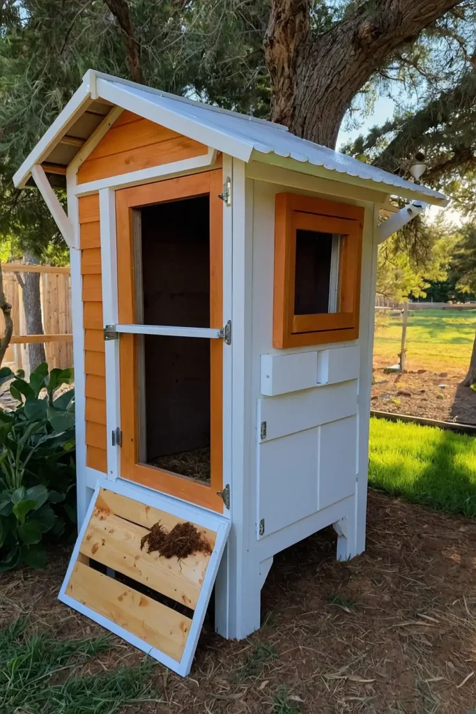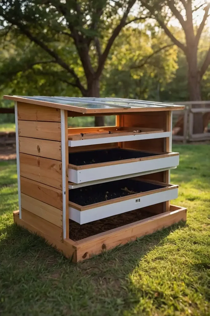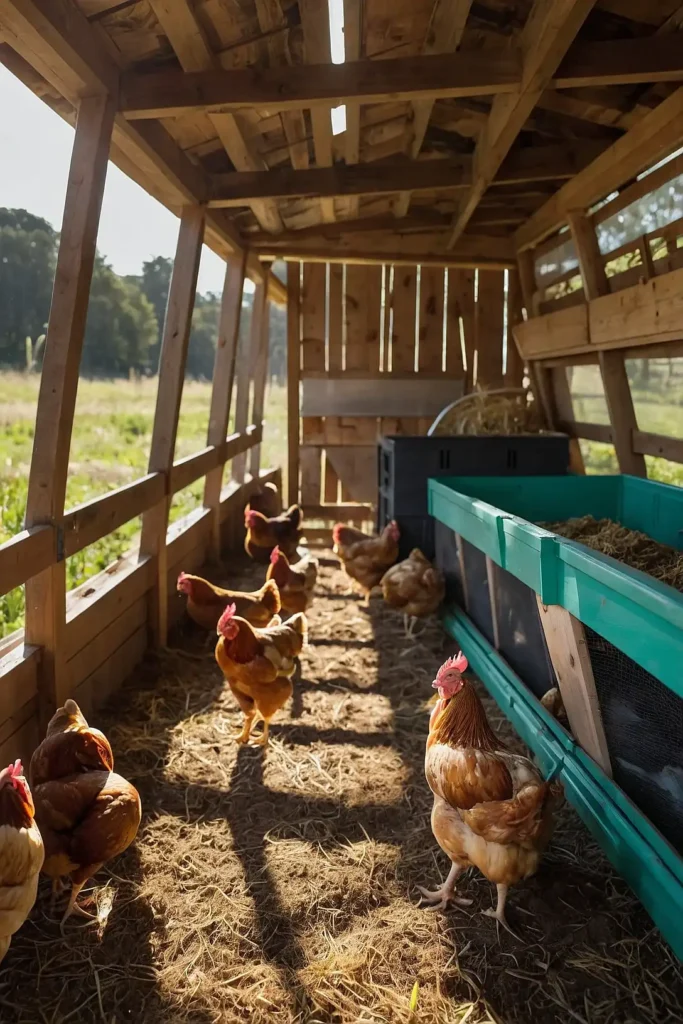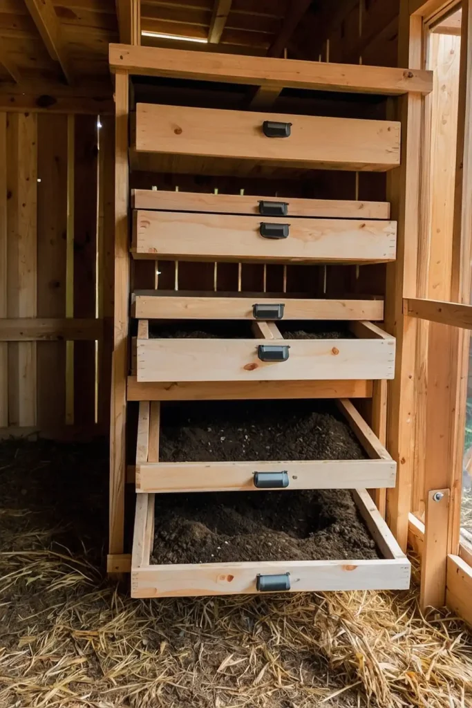 Design your roosting area with pull-out composting drawers that contain carbon-rich materials like pine shavings or dried leaves.