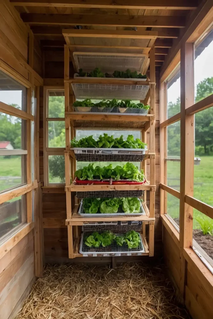 Dedicate a sunny corner of your coop to growing trays of wheatgrass, sprouts, or microgreens for fresh winter forage.