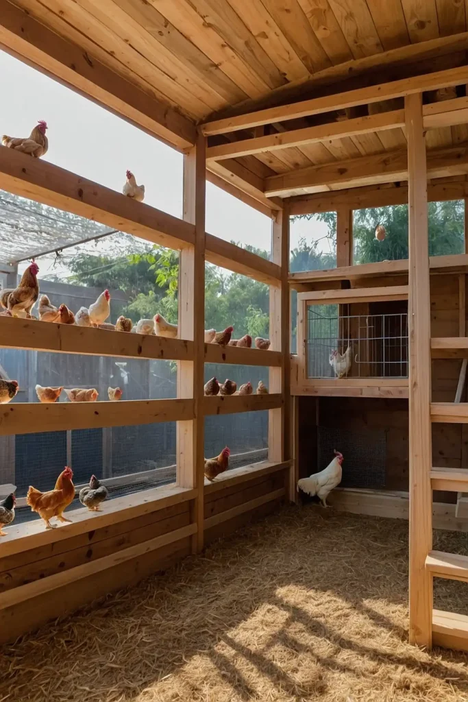 Construct a series of connected platforms at various heights throughout unused vertical space in your coop.
