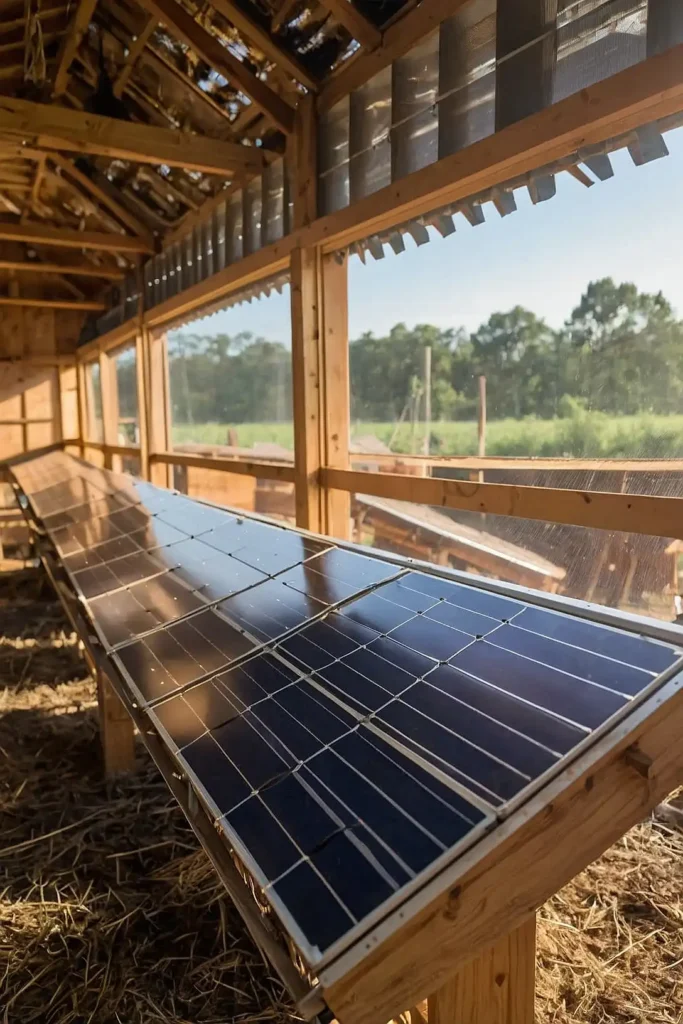 Install small solar panels connected to automated vent fans that regulate temperature and humidity inside your coop.