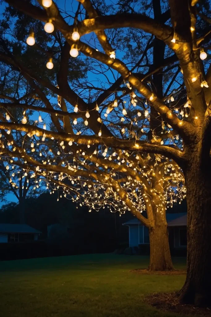 Create the illusion of floating lights by installing string lights throughout tree canopies without wrapping branches.