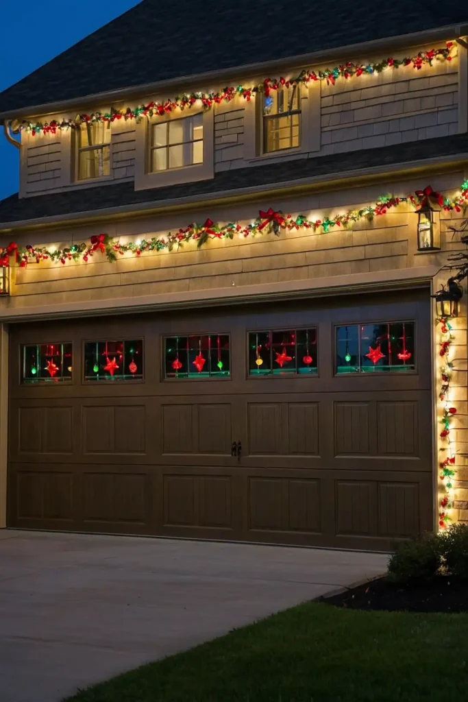 Transform your garage door into a festive focal point using grid-pattern light installations or projection systems.