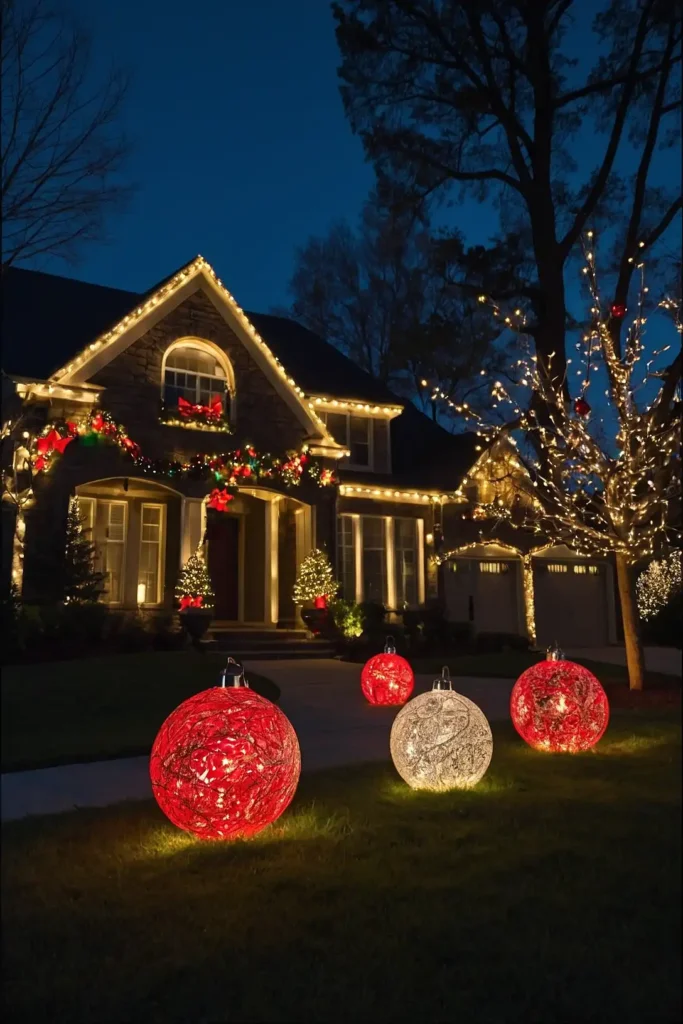 Create multiple sizes ranging from 1-3 feet in diameter for visual variety. The spherical shapes provide interesting contrast to the linear lights on your home.