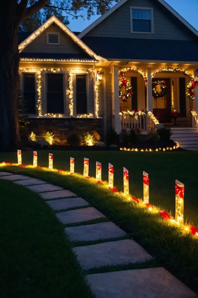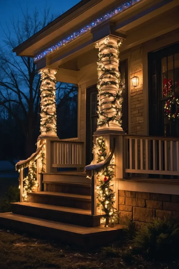 Transform pillars and railings into candy cane-inspired features by wrapping them with evenly spaced string lights.