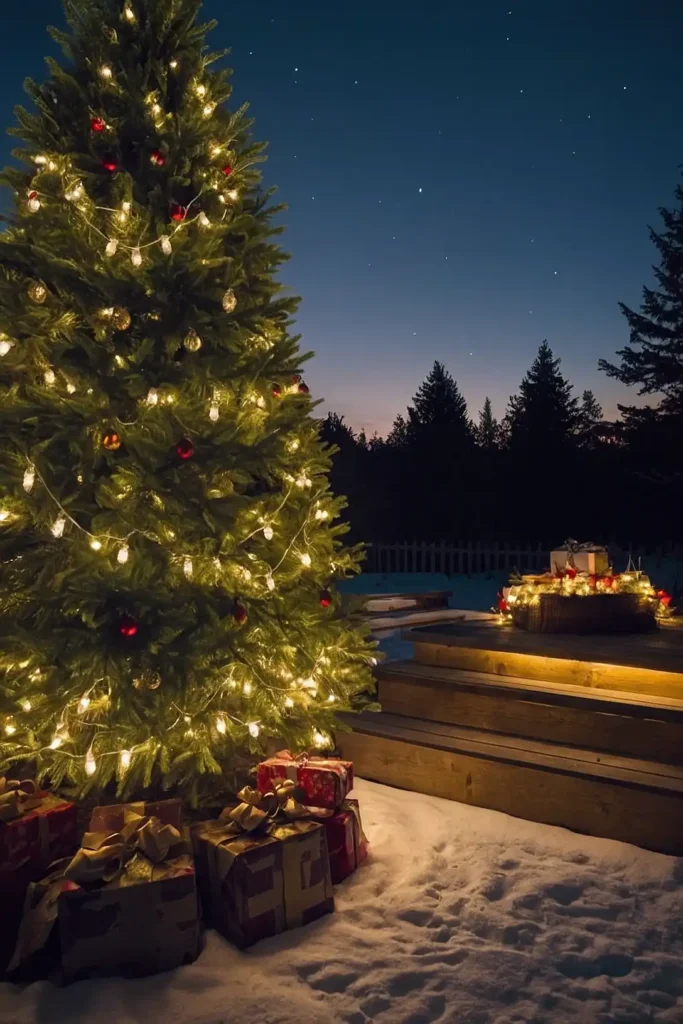 This approach transforms ordinary outdoor spaces into enchanted environments perfect for holiday gatherings, particularly around entertainment areas.