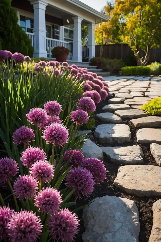 Plant sweeping drifts of alliums (ornamental onions) along your driveway for dramatic spring and early summer impact.