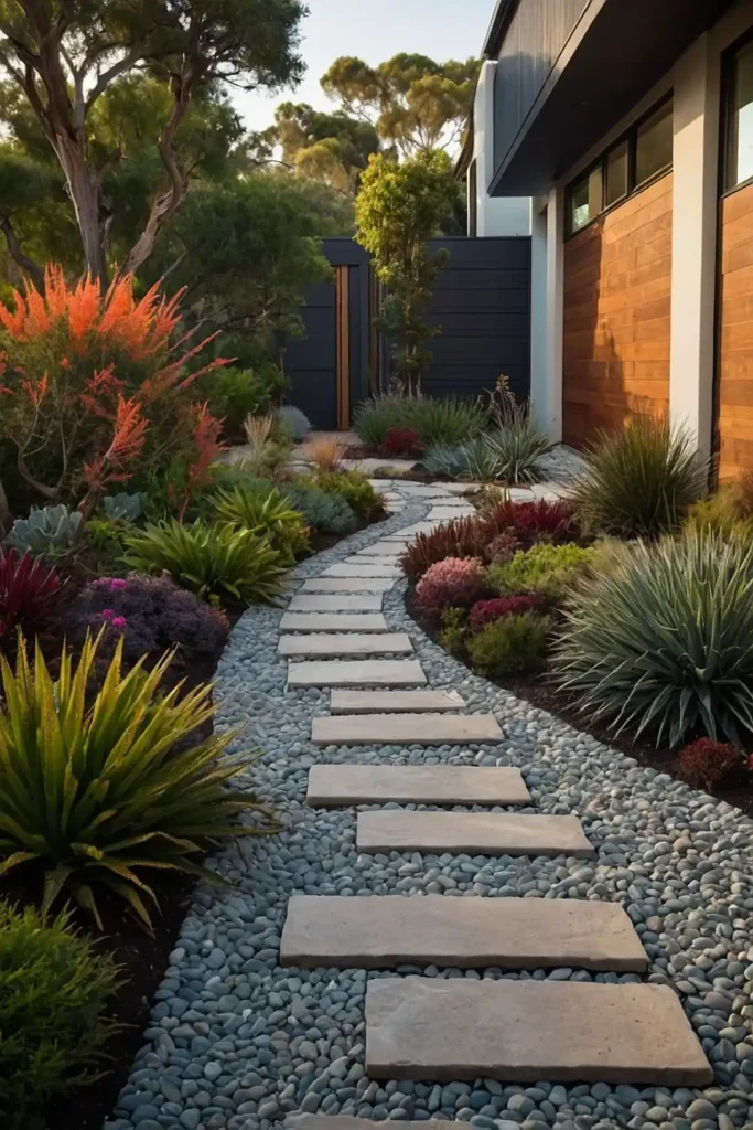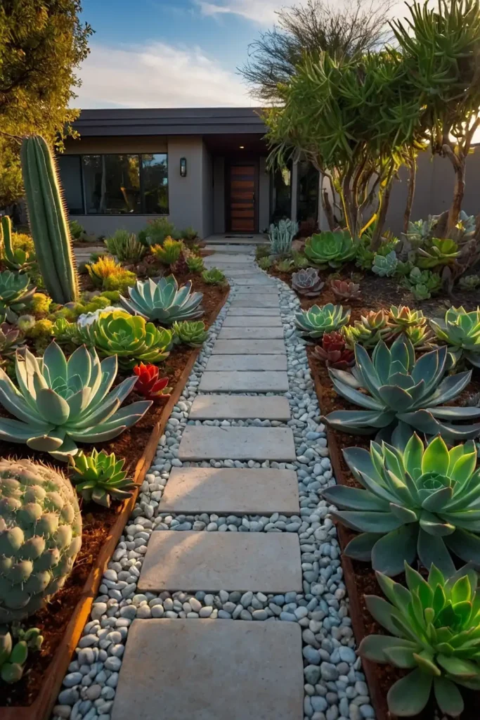 Create a low-maintenance, drought-resistant border using architectural succulents and decorative gravel.