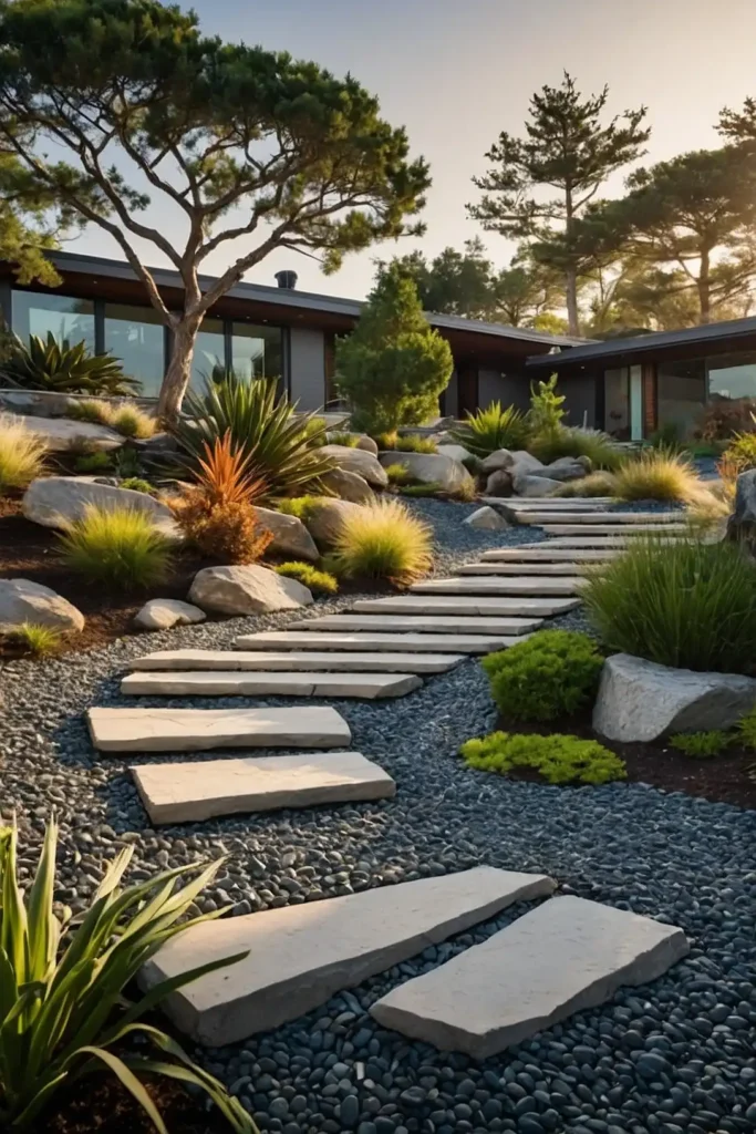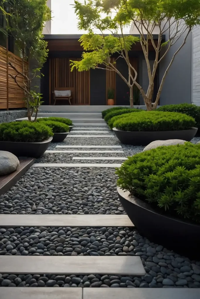 Add sparse plantings of architectural species like Japanese maple, pine, or ornamental grasses.