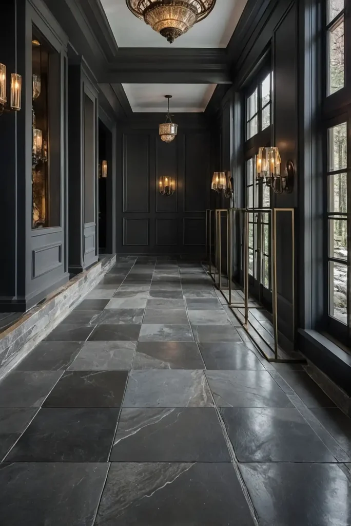 Install gray stone, porcelain, or ceramic tiles in your hallway for a durable, elegant foundation that stands up to heavy foot traffic.