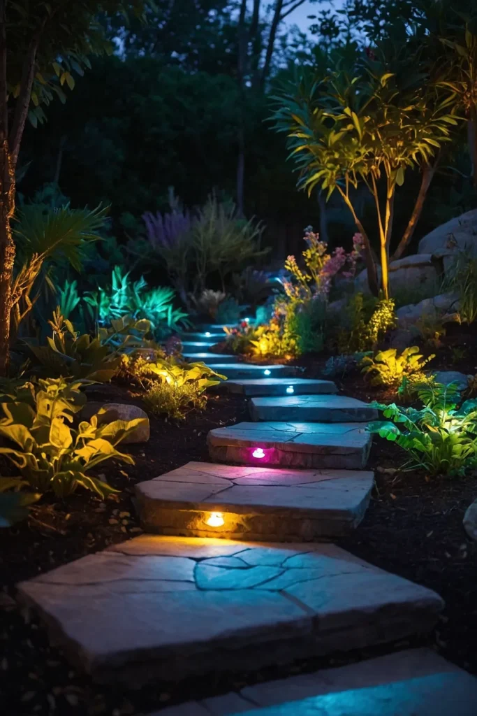 Install smart pathway lighting with color-changing capabilities for customizable outdoor ambiance.