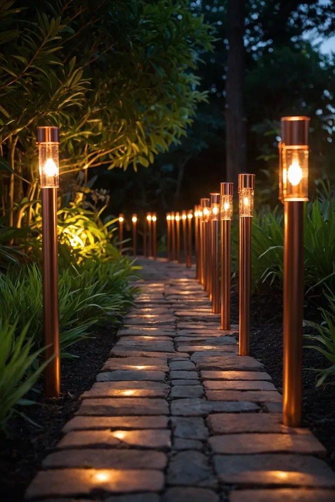 Install copper pathway lights that will naturally patina over time, developing unique character.