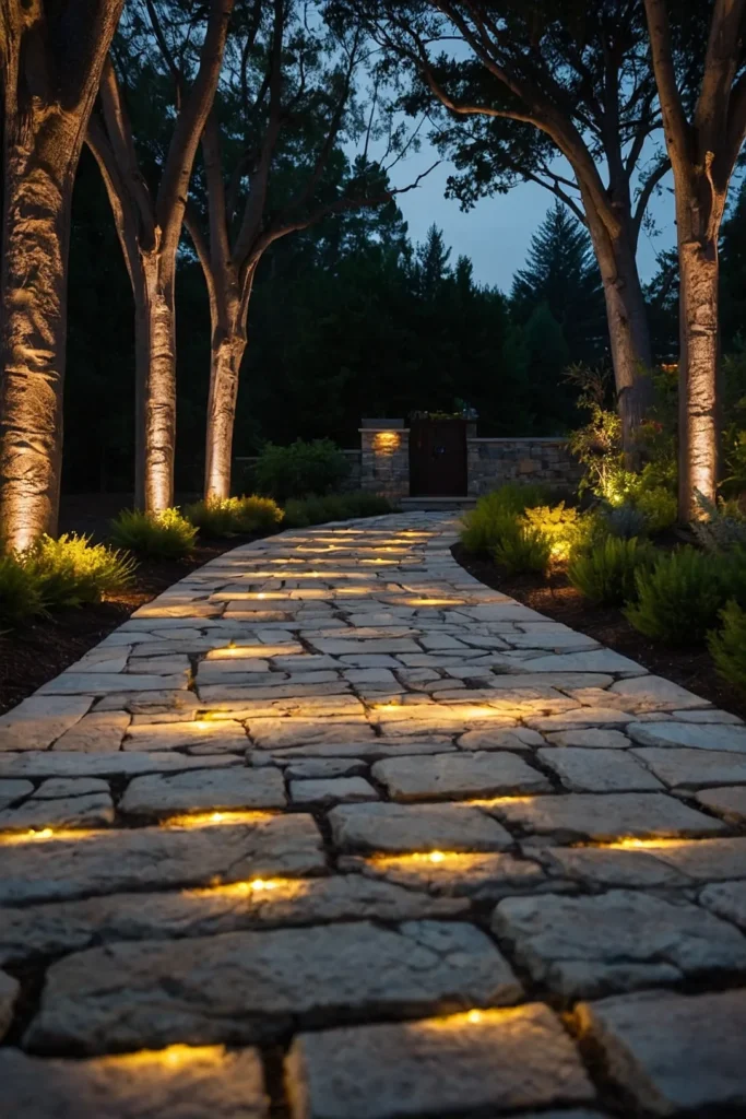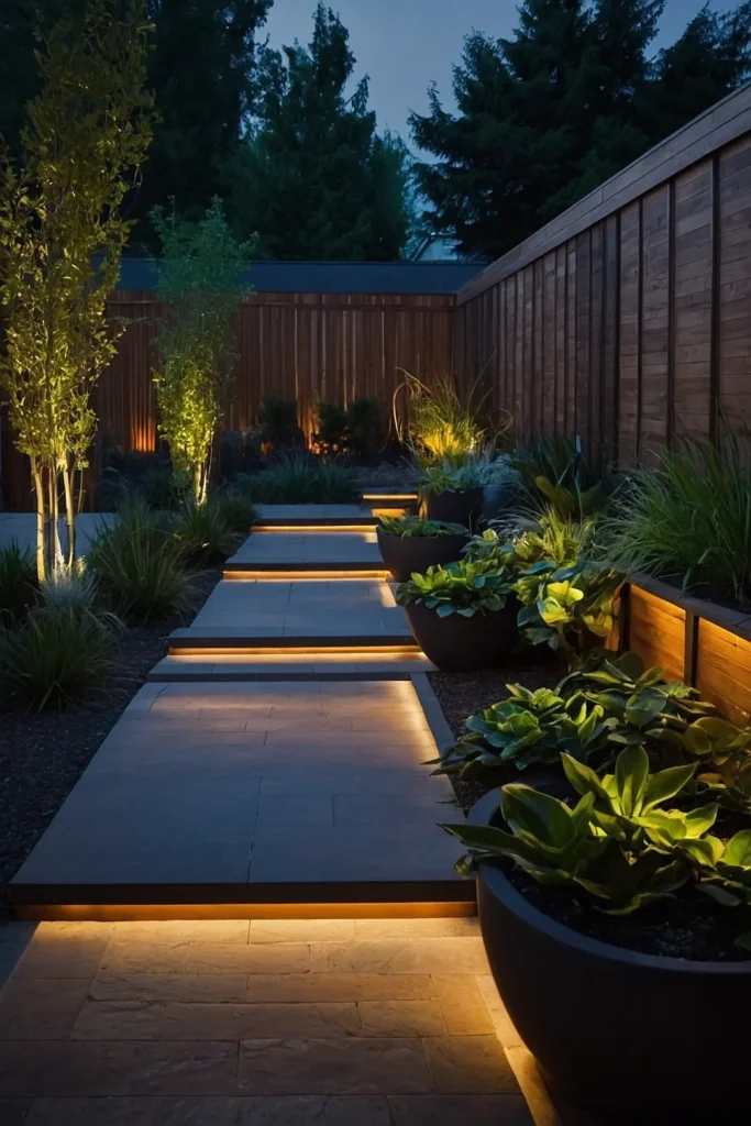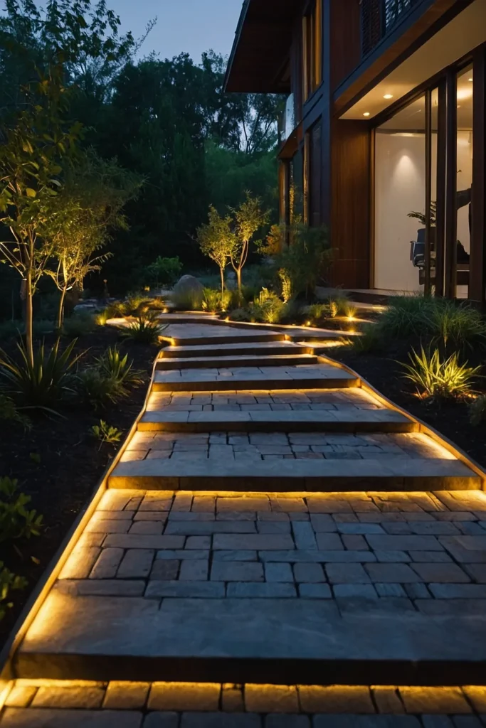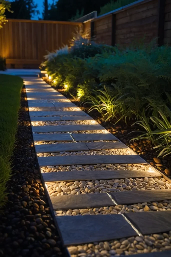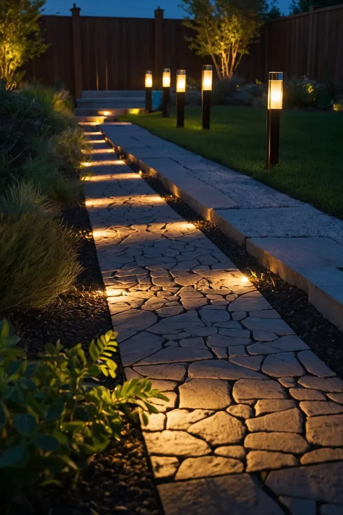 Install flush-mounted lights directly into your pathway material for a sleek, modern look.